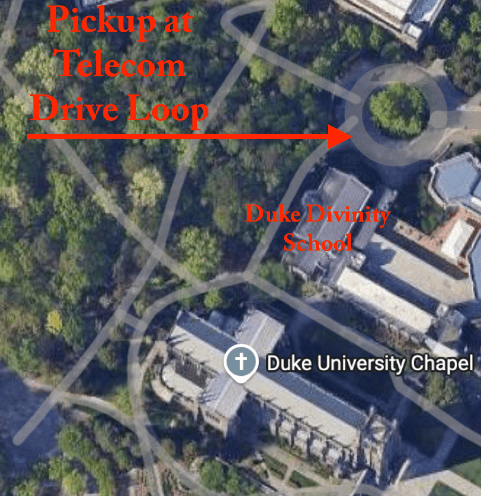 | 12:00 pm | Shuttle arrives at Duke Divinity (Telecom Drive loop) |